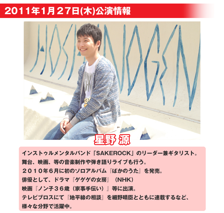 - ※1月27日(木)開催「星野 源」公演の当日券販売はございません。