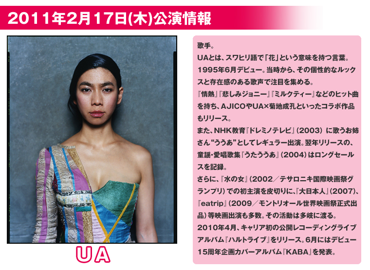 - ※2月17日(木)開催「UA」公演の当日券販売はございません。