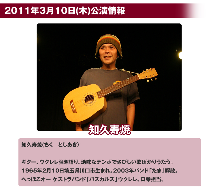 - ※3月10日(木)開催「知久寿焼(ex たま)」公演の当日券販売は17時30分より販売を開始致します。
