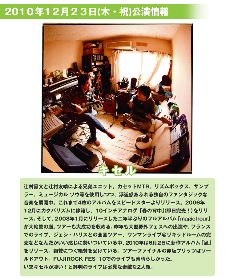 - ※12月23日(木・祝)開催「キセル」公演の当日券販売はございません。