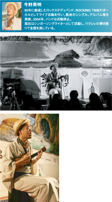 オープニングアクトは、吉祥寺の魅力にとりつかれて「吉祥寺に住み着いてしまった」というヤギリンゴさん。浴衣姿にウクレレを持って、登場です。笑顔がすてきなヤギリンゴさんの、のびやかな歌声が響きます。